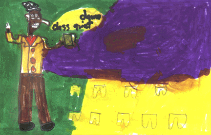 This book is about a teacher named Dr. Flossman. He teaches his students, the teeth, how to protect themselves from cavities, gingivitis, plaque, and tooth decay. He teaches them how to brush their teeth everyday so nothing will happen to them. He reviews the parts of a tooth, and he also teaches that babies need their teeth, primary teeth, and where they go after children lose them. He also teaches them what each group of teeth are supposed to do. After lunch, Dr. Flossman tells them to brush and floss but they say no. One of them says, "In this crazy world, who has time to brush?" Read this story to find out what happens to your teeth when you don't want to brush them. You should read OPEN WIDE because it tells you how to protect your teeth.