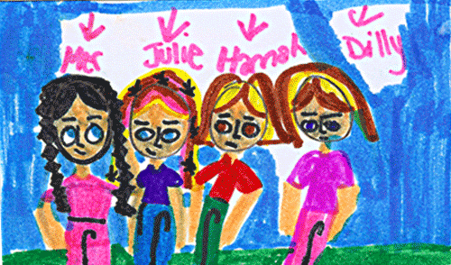 Hello, my name is Zoe, age 8. I go to school at Thurgood Marshall Academy Lower School. Dilly can’t wait till she goes to Camp Dakota. Meredith can wait till the camp starts. When they get there, they see adults and kids. Does Dilly meet any friends? Does Meredith change her mind about what she thinks of Camp Dakota?