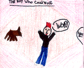 This story is about a little boy, who wanted to trick the town, because he was bored. Every time he cried "wolf" everyone in town would come and save him, but one day there was a real wolf and he cried "wolf" but nobody came to save him and the wolf ate him.