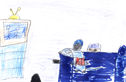 My favorite part in the book was when he was doing exercises because it was funny. He was kicking and raising his hands. The part I find funny was when he was eating. When I read the book I felt happy because it was a funny book with colorful pictures.