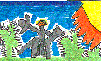 I liked this book because it was one of my teacher?s books that she read to the class. I got the book so that I could see the pictures closer up - they are really good pictures! I like the way Bubba and his stepdaddy look. They are very realistic pictures. For example, by "ugly" I meant that you could see dirt stains on him. Another thing I liked about the book was that it was sort of like an I Spy book - the fairy godcow is hidden on every page but one, and you get to search each page looking for her. The story sort of reminded me of Cinderella because of the wicked stepmother and stepsisters. Instead of a girl dancing with a man, it was a man dancing with a girl . . . it was sort of backwards.