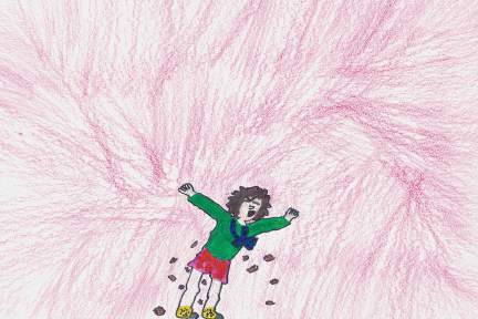 There are a lot of illustrations and I like them because they have a lot of detail in them and a lot of them are very funny. One of my favorite illustrations is Junie B. hollering at her grandpa.